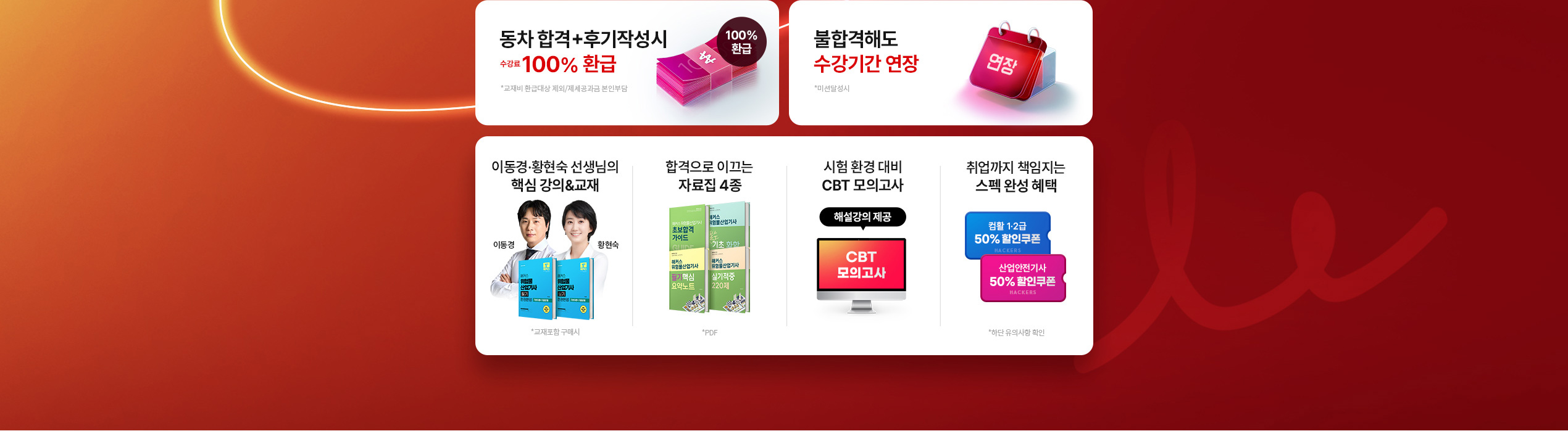 <100% 환급반>은 2026년 1회 필기 또는 실기 시험 불합격 시 수강기간을 다음 실기 시험일까지 연장해드립니다.