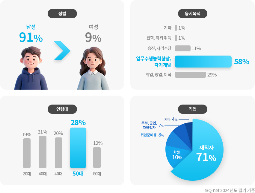 · 실기와 매우 연관성이 큰 과목이므로 실기를 함께 준비한다면 보다 많은 시간을 투자하는 것이 좋습니다.